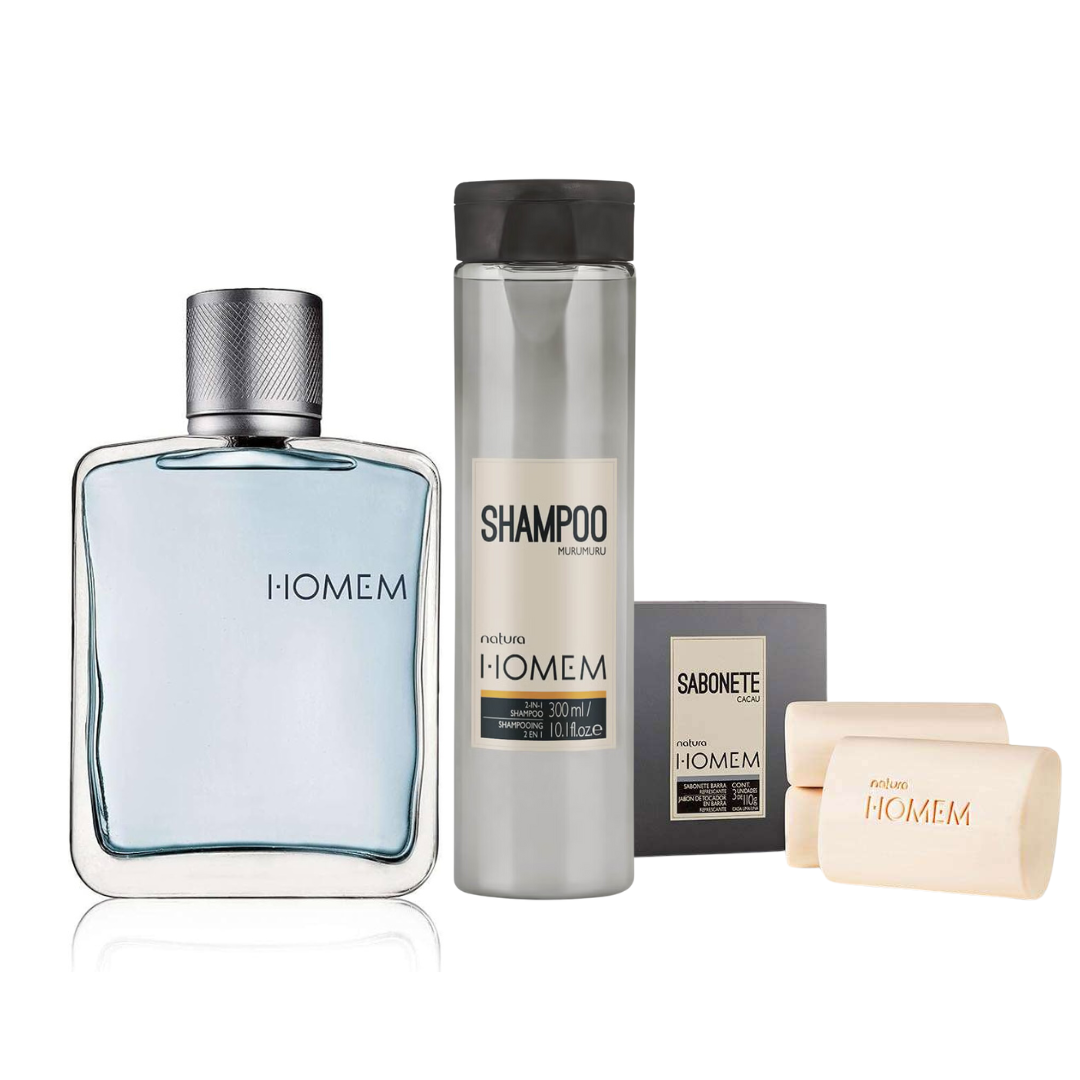 - Sabonete em Barra Natura Homem (3 x 110g): A bar soap that gently cleanses and nourishes the skin, leaving a fresh, masculine scent.